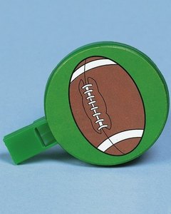 野球、サッカー、アメフトのシールが貼られたプラスチック製の笛です。声を吹き込む感覚で音を振動させて楽しみます。あくまでもおもちゃ感覚で、ゲームの景品やギフトバッグのおまけにどうぞ。
